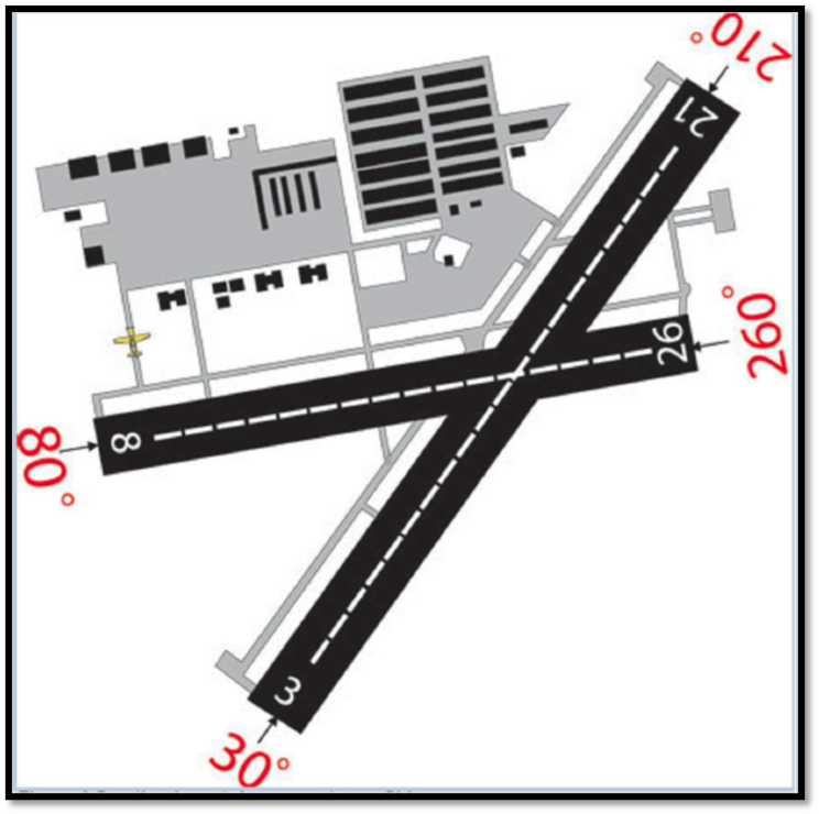 Observe que apareceu na imagem acima algumas placas que são bem comuns nos aeroportos e também possuem a função de orientar o piloto no solo.