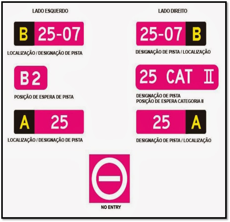 Veja abaixo as principais placas que podem ser encontradas nos aeroportos e seus significados: