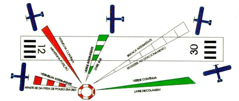 Os sinais luminosos emitidos para o tráfego aéreo têm como função manter a comunicação entre piloto e controlador diante a uma falha de comunicação ou inexistência de rádios a bordo da aeronave.