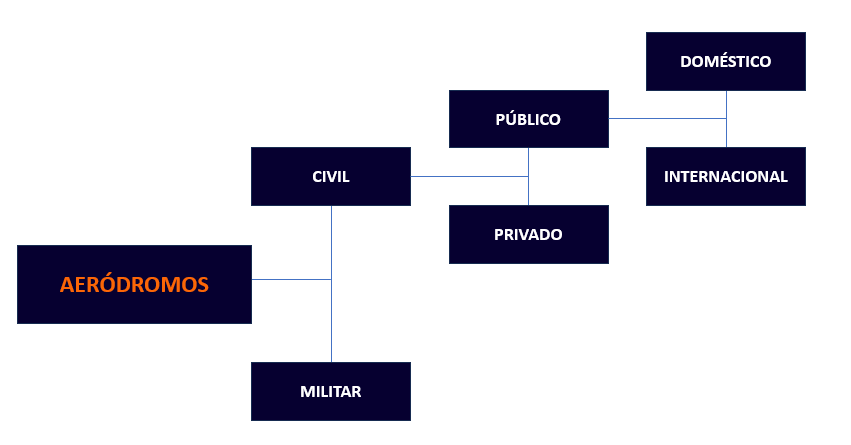 - Aeródromos públicos: Destinado ao tráfego de aeronaves em geral