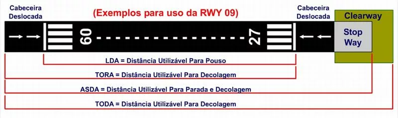 As distâncias declaradas para utilização das pistas são usadas para efeito de cálculos de pouso e decolagem e podem ser encontradas nas cartas de aeródromo (ADC).