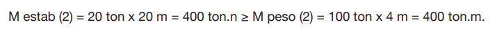 Momento do estabilizador = 20 ton x 20 m = 400 ton.m.