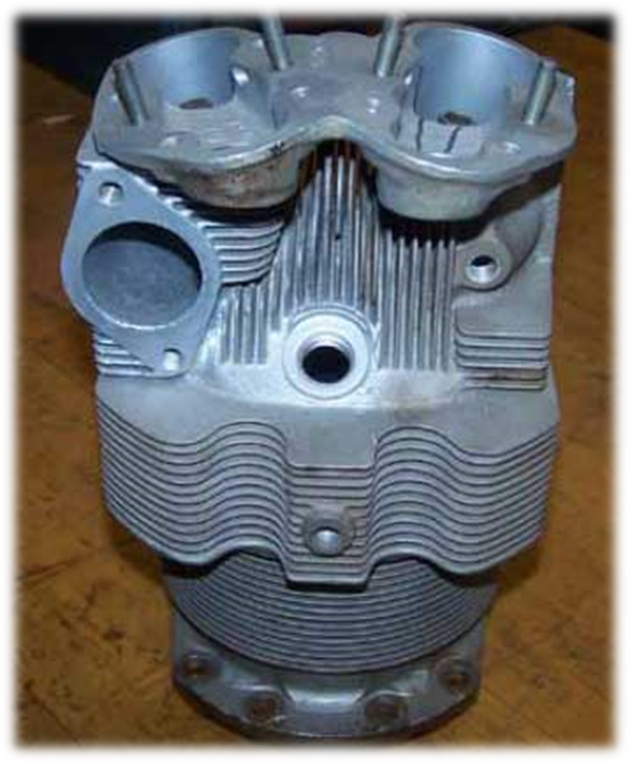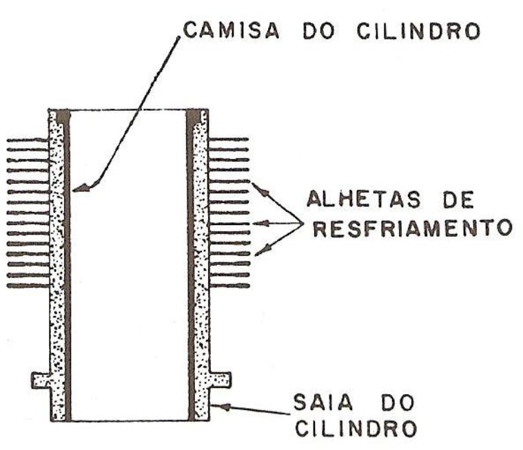 Corpo – É geralmente feito de aço e possui externamente alhetas de refrigeração que aumentam a área de contado com o ar, a fim de eliminar o calor. A parte interna é endurecida para reduzir o desgaste provocado pelo movimento do pistão. Nos cilindros de liga de metal leve, o lado interno é formado por uma camisa resistente ao desgaste.