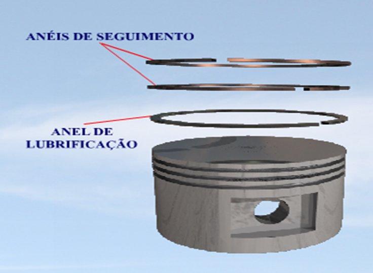 Anéis de segmento – Existe uma pequena folga entre o pistão e o cilindro, para permitir o livre movimento e compensar a dilatação com o calor. Essa folga é vedada com anéis ou molas de segmento instalados na saia do pistão. Existem dois tipos de anéis.