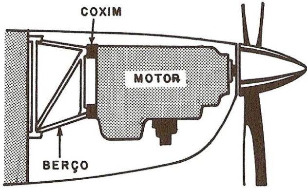É a estrutura que serve para fixar o motor ao avião. Geralmente é feito de tubos de aço em diagonal, para suportar o torque e a tração. Os pontos de fixação ao cárter possuem coxins de borracha para absorver as vibrações do motor.
