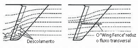 Wing Fences, são “cercas” aerodinâmicas em forma de placas, colocadas normalmente em aviões que possuem asas enflechadas, cuja finalidade é evitar que o fluxo de ar se desloque rapidamente da parte interna das asas para as pontas, gerando assim uma perda de sustentação muito rápida.