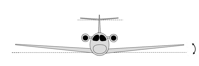 Isso é causado pelo chamado Efeito Diedro. Quando as asas são projetadas de modo que sejam “dobradas” para cima, diz-se que elas possuem um diedro geométrico positivo. Esse diedro geométrico produz o seguinte efeito aerodinâmico: se em voo, por qualquer motivo uma das asas cair, o consequente deslocamento lateral faz com que a aeronave volte à situação de nivelamento das asas. Em outros termos, o diedro nas asas provoca rolamento devido à guinada lateral.