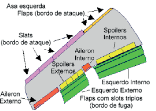 Para melhorar a eficiência do comando lateral são empregados os Spoilers. Tais superfícies “destroem” a sustentação, baixando a asa correspondente e causando um rolamento. Em voo, essas superfícies também podem ser utilizadas como freios, quando são levantados em pares, e recebem o nome de Speed Brakes. Os Spoilers também são utilizados no solo, sendo elementos muito importantes na redução da corrida de aterragem (ground spoilers).