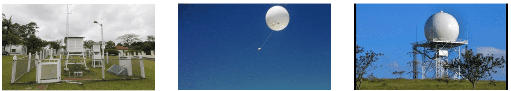 - Observação – É a verificação visual ou instrumental dos elementos que representam as condições meteorológicas de um determinado local numa determinada hora. Pode ser realizada pela Estação meteorológica de superfície (EMS), Estação meteorológica de altitude (EMA) ou radares meteorológicos (ERM).