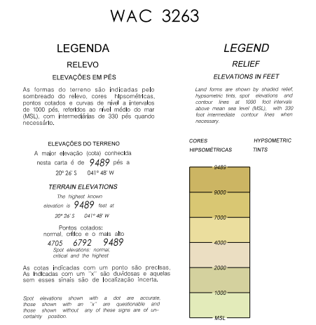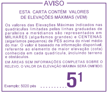 Cada quadrante da carta WAC limitado por linhas de paralelos e meridianos possui uma indicação de elevação máxima conforme mostrado ao lado.