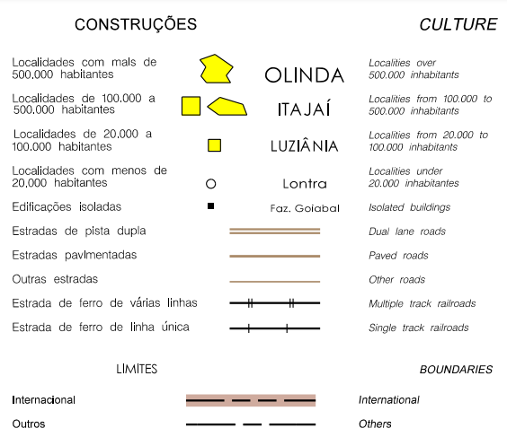 Abaixo podemos ver pequenas legendas de cidades, estradas, linhas de ferro e limites de fronteira nacional e internacional.