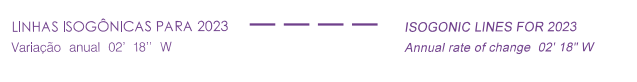 Outra coisa que devemos atentar é para a variação anual da carta. Como mostrado acima, as linhas isogônicas possuem valores datados do ano de 2015 e uma variação anual de 5’00’’W. Portanto, ao utilizarmos essa carta num ano diferente deste devemos fazer a atualização da DMG conforme já aprendido em aulas passadas.