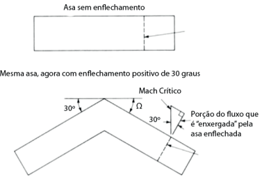 desse efeito é conseguida por meio do enflechamento das asas do avião para trás. Dessa forma, a componente de velocidade do escoamento, perpendicular ao bordo