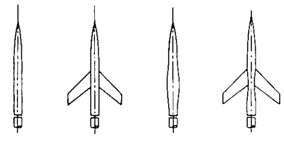 Whitcomb observou as formações de ondas de choque de vários modelos em túnel de vento, envolvendo formas que incluíam asas e apenas a fuselagem, e a forma recuada como mostrado abaixo.
