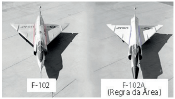 A primeira aplicação da regra de área foi na modificação do Convair F-102 Delta Dagger como F-102A. O F-102 teve um desempenho ruim, devido ao alto arrasto de onda, e não conseguiu um voo supersônico. A aeronave foi então reprojetada como F-102A, reduzindo (recuando) a área da fuselagem na cintura, seguindo a Regra da Área de Whitcomb. O F-102A foi mais tarde capaz de atingir Mach 1.22, com uma redução considerável no arrasto de ondas transônicas. Tal perfil chegou à época a ser apelidado de “garrafa de coca cola”, pela sua semelhança com as garrafas de refrigerante vendidas nas décadas de 1950 e 1960, cujos perfis possuíam “cinturas afinadas”.
