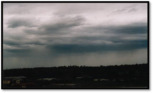 c) Nimbostratus (Ns) – camada de nuvem cinza-escura que cobre quase sempre todo o céu e é suficientemente espessa para ocultar o sol ou a lua. A base parece difusa devido à precipitação de chuva ou neve que caem abundantemente, mais ou menos contínuas. Às vezes o Nimbostratus pode ser confundido com o Altostratus, dado que é de igual espessura, porém a sua cor cinza mais escura e a falta de uma superfície inferior distinta é que vai diferenciá-la com o Altostratus.