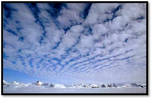 g) Cirrocumulus (Cc) – grupo, lençol ou camada de nuvem fina e branca sem sombra própria, composta de pequenos grânulos, unidos ou separados. Os Cirrocumulus indicam em geral a base da corrente de jato e também turbulência em níveis altos,