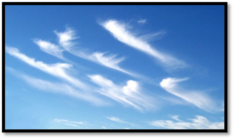 a) Uncinus – forma especial de cirrus, chamada popularmente de “rabo-de-galo” e cujo nível é caracterizado por ventos fortes associados à corrente de jato.
