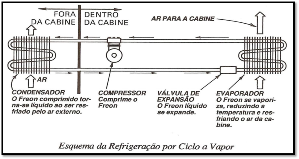É um sistema utilizado para diminuir a temperatura do ar na cabine. Normalmente faz parte do sistema de ar condicionado. Existem dois sistemas de refrigeração: