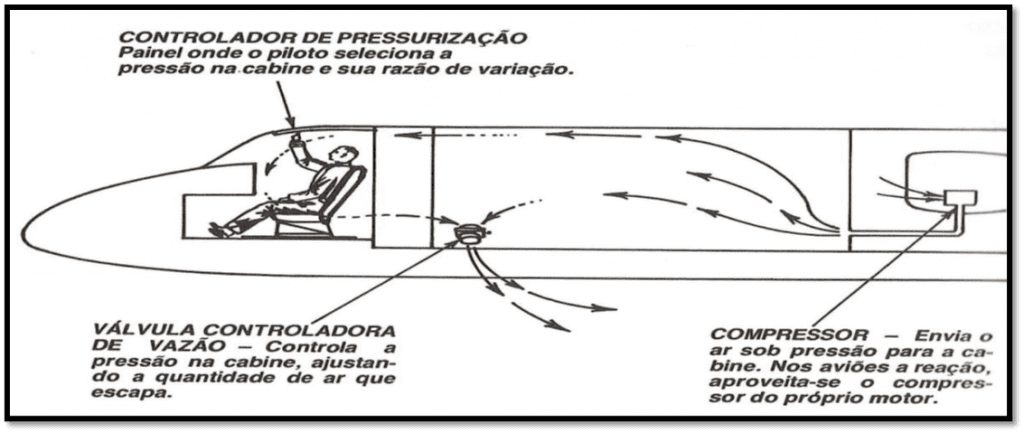 Este sistema tem a finalidade de manter uma pressão dentro da cabine adequada ao corpo humano durante voo em altitude elevada.