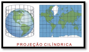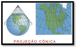 Obs:. As projeções, além dos fatores mencionados acima podem ser classificadas quanto a sua superfície em projeções cilíndricas, planas ou cónicas conforme mostrado na imagem abaixo.