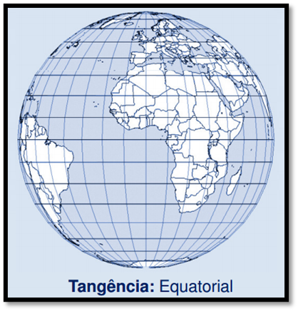 Oblíqua: É a projetada em pontos intermediários, entre o Equador e os polos.