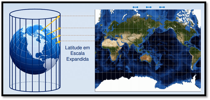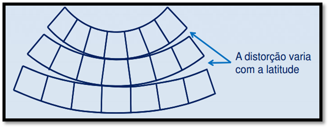 - Grandes distorções em altas latitudes;