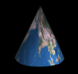 Possui a sua origem no centro da Terra e sua superfície é projetada sobre um cone.
