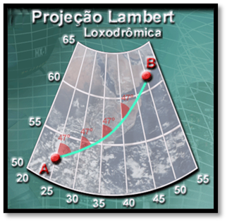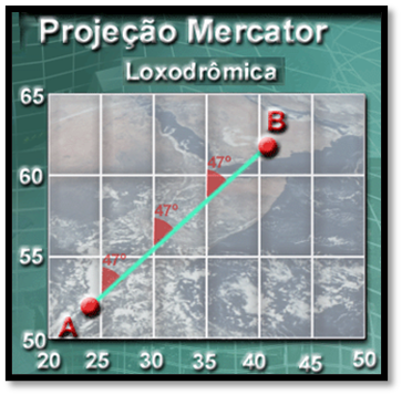 Obs:. As rotas loxodrômicas por serem representadas por uma reta facilitam muito a leitura do rumo da navegação. Porém, é uma projeção muito utilizada em cartas para navegação marítima.