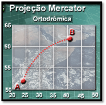 As rotas traçadas na projeção Mercator assumem as seguintes configurações.