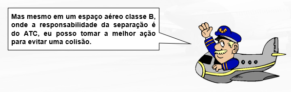 Apesar de a separação no espaço aéreo classe B ser de responsabilidade do ATC isso não exime o piloto em comando da responsabilidade de tomar a melhor ação para evitar uma colisão.