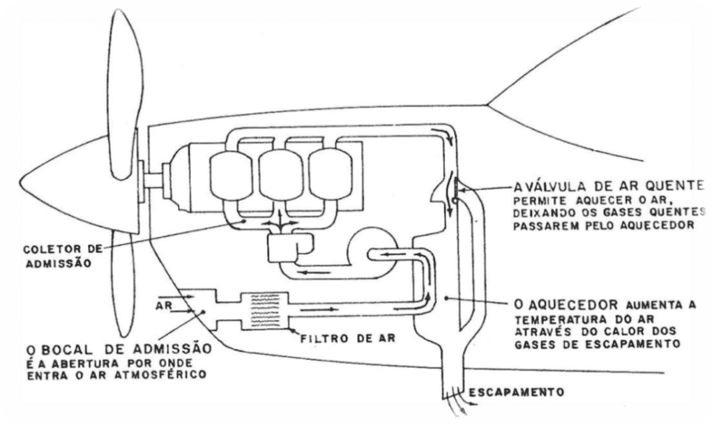 Obs – Quando a válvula de ar quente é aberta o motor perde potência porque o aquecimento do ar admitido diminui sua densidade, diminuindo a potência.
