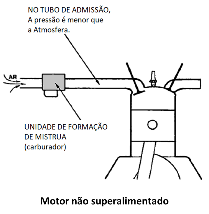 Num motor comum, não superalimentado, o pistão aspira o ar através de uma rarefação que ele cria no cilindro durante a fase de admissão. Portanto a pressão no tudo de admissão é sempre menor do que a pressão atmosférica. Os motores não superalimentados perdem potência com a altitude devido a diminuição da quantidade de ar.