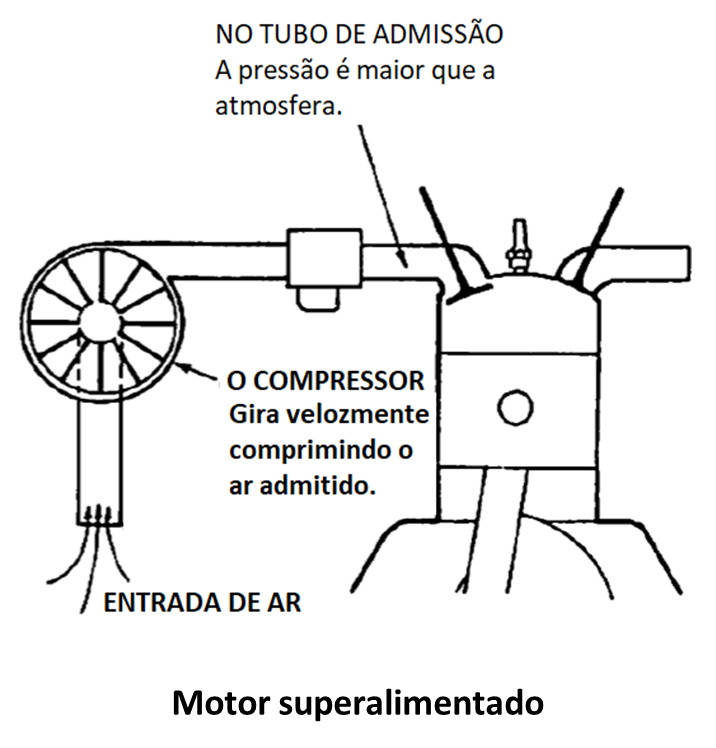 Num motor superalimentado o ar é aspirado por um compressor que o comprime e o envia sob pressão para os cilindros. A pressão de admissão pode ser portanto maior do que a pressão atmosférica. O motor superalimentado pode funcionar em altitudes como se estivesse ao nível do mar, porém, acima de uma determinada altitude crítica, ele começa também a perder potência.