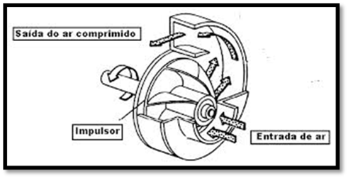 Os compressores usados na superalimentação são do tipo centrífugo. Eles possuem uma ventoinha que gira em velocidade elevadíssimas, arremessando o ar, por efeito centrífugo, contra difusores colocados ao seu redor. Nos difusores, a velocidade do ar diminui e a pressão aumenta.