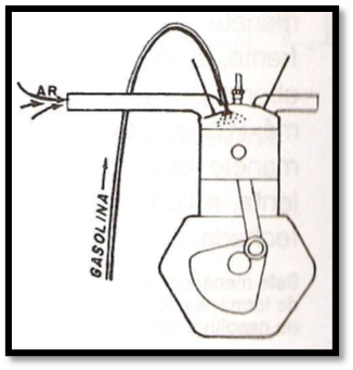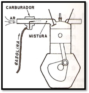 Carburação – Neste sistema, o ar passa através de um dispositivo denominado carburador, onde se mistura com a gasolina.