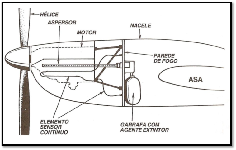OBS: Nem todos os aviões têm um sistema de detecção e extinção de fogo. Por exemplo, muitos aviões de treinamento possuem apenas um pequeno extintor portátil.